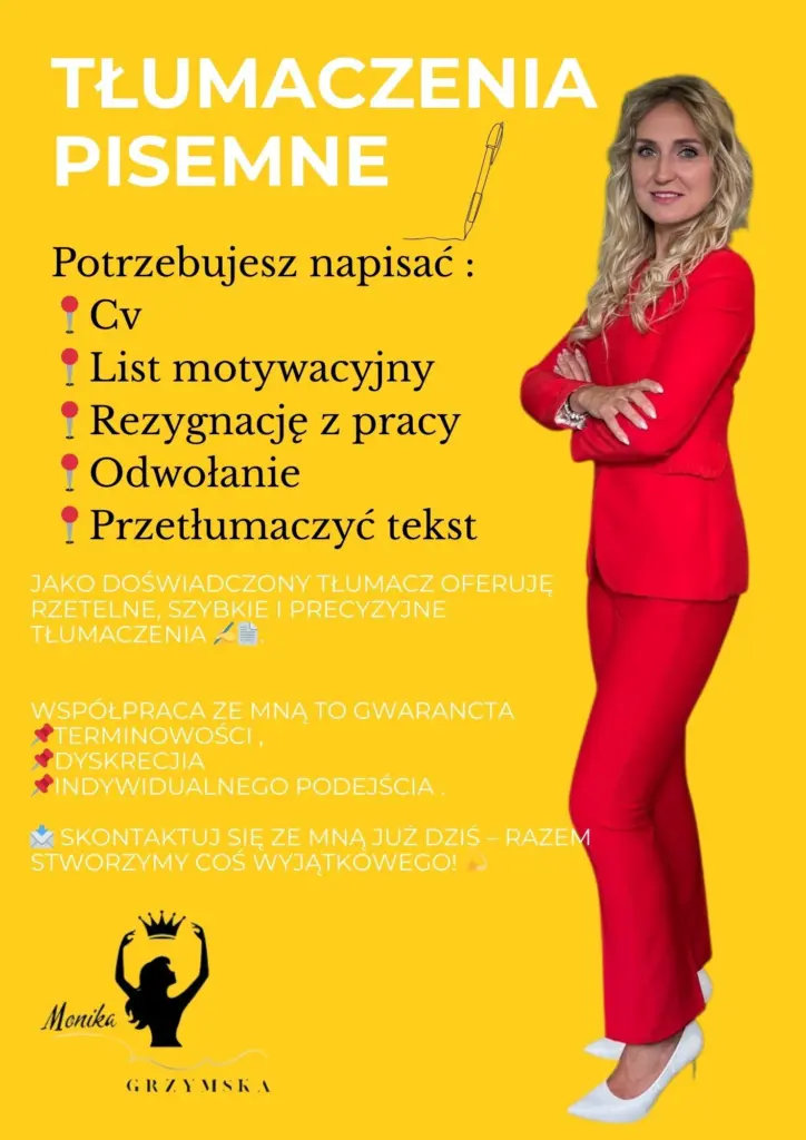 Oferuje profesjonalne tłumaczenia pisemne zwykłe oraz przysiegłe. Jeżeli potrzebujesz tłumaczenia pisemne przysiegłe skontaktuje Cię z współpracującym Tłumaczem przysięgłym pisemnym. Zapraszam